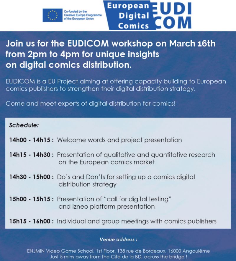 In order to support European comics publishers to move into digital distribution and otpimize their digital strategy and sales, we would like to invite you to a special event during Angoulême Festival.